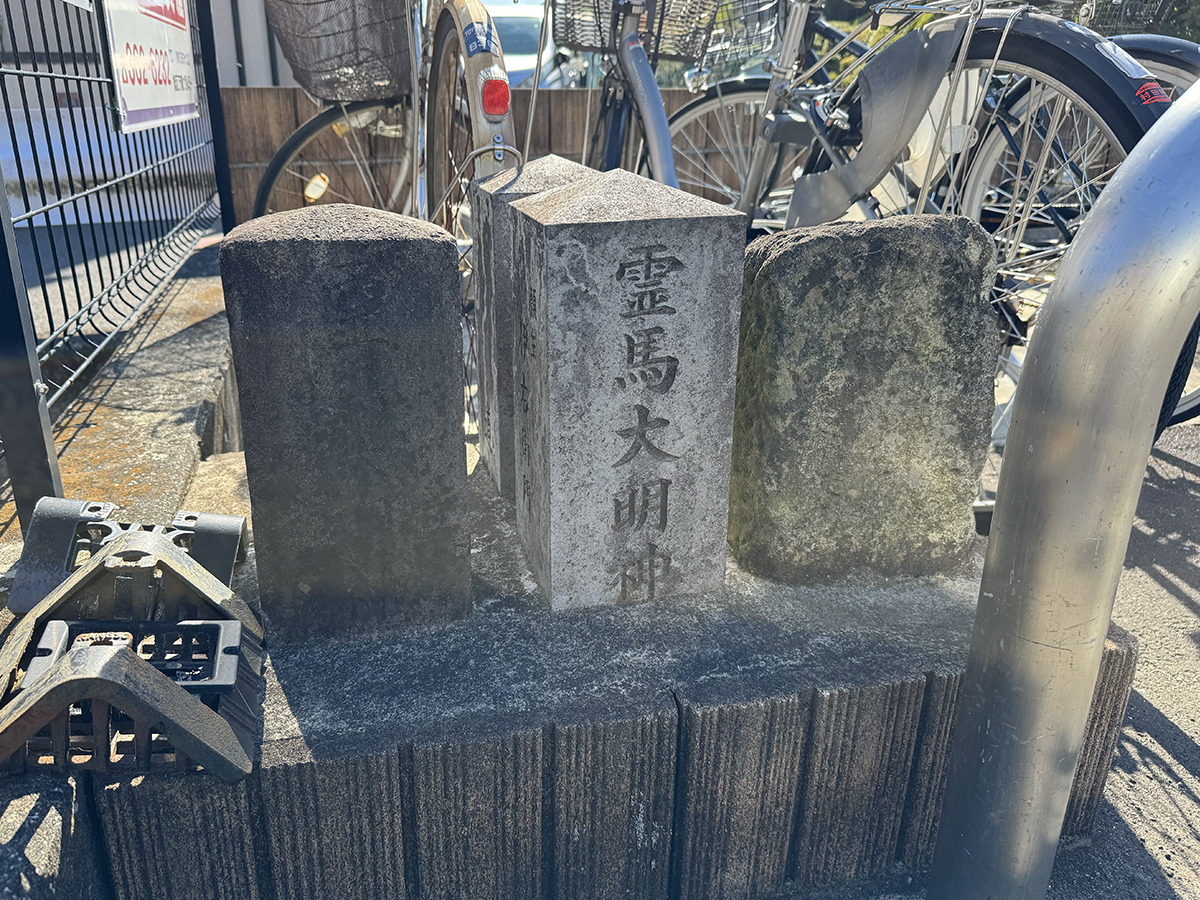 現在は全部で4つの石塔があるのですが、そのうち2つは古いものを基に最近造られたもののよう。古いもののうちひとつはもう文字すら判別するのが難しい状態なのですが、おそらくそれが道標で、「鎌倉道」という文字があったようです。もうひとつは「霊馬大明神」と刻まれており、1827年(文政十年)に建立されたもの。おそらくは馬頭観音の類型のひとつと思われます。