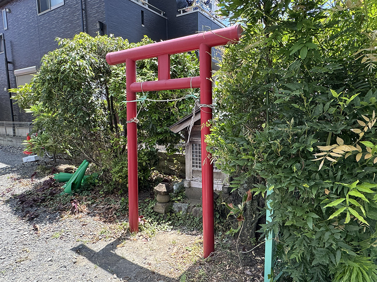 ラーメン屋さんの軒先にお祀りされている小祠 稲荷社(藤沢市本鵠沼1-15-15)
